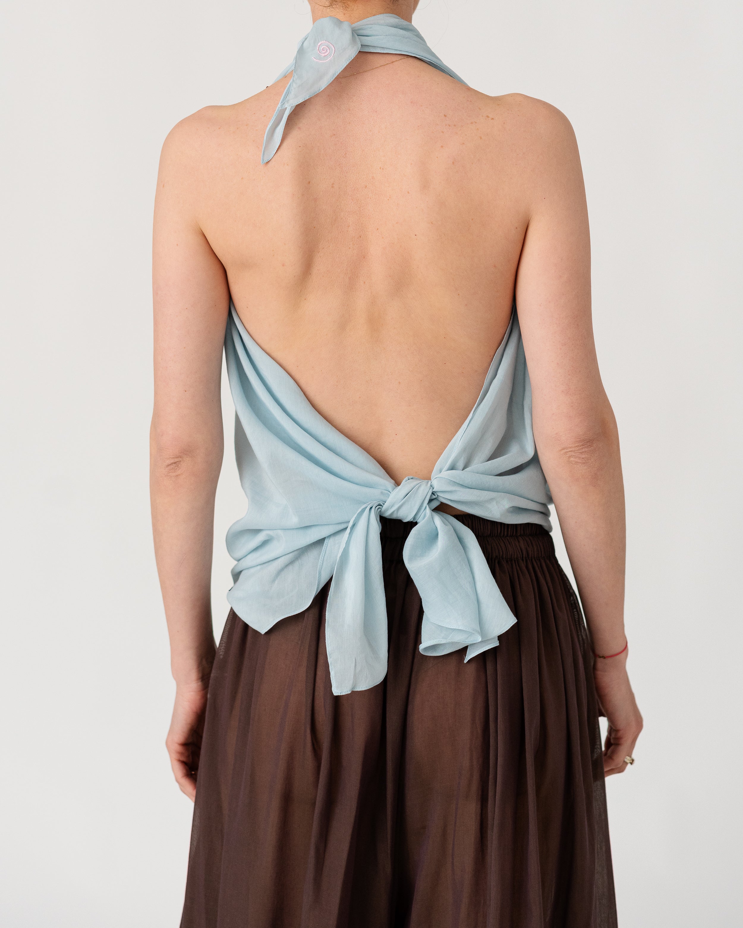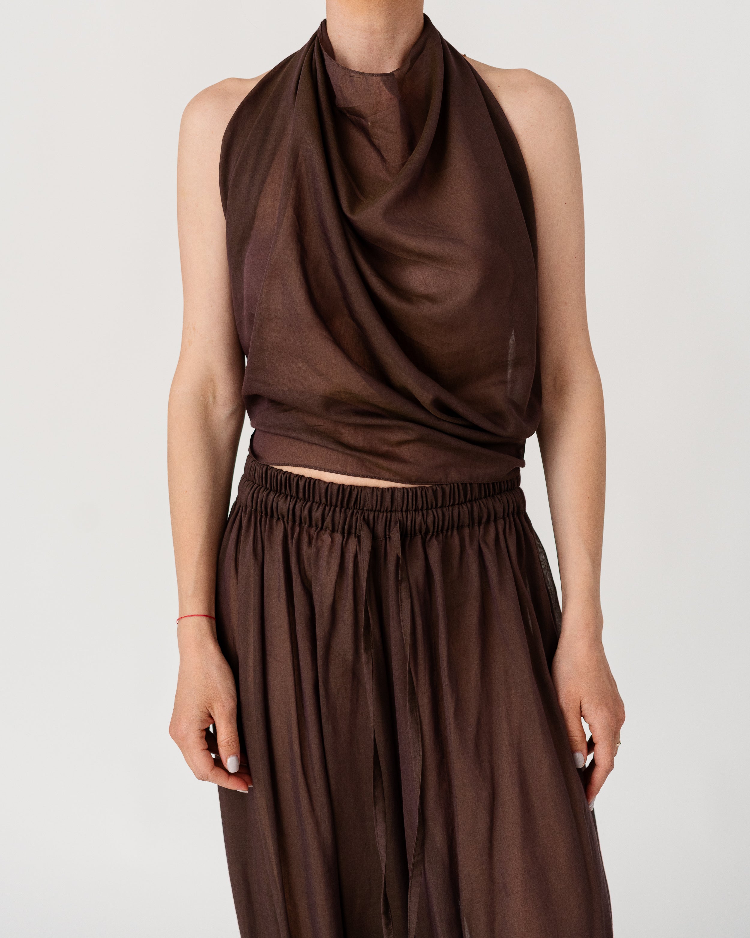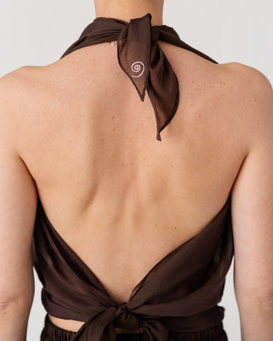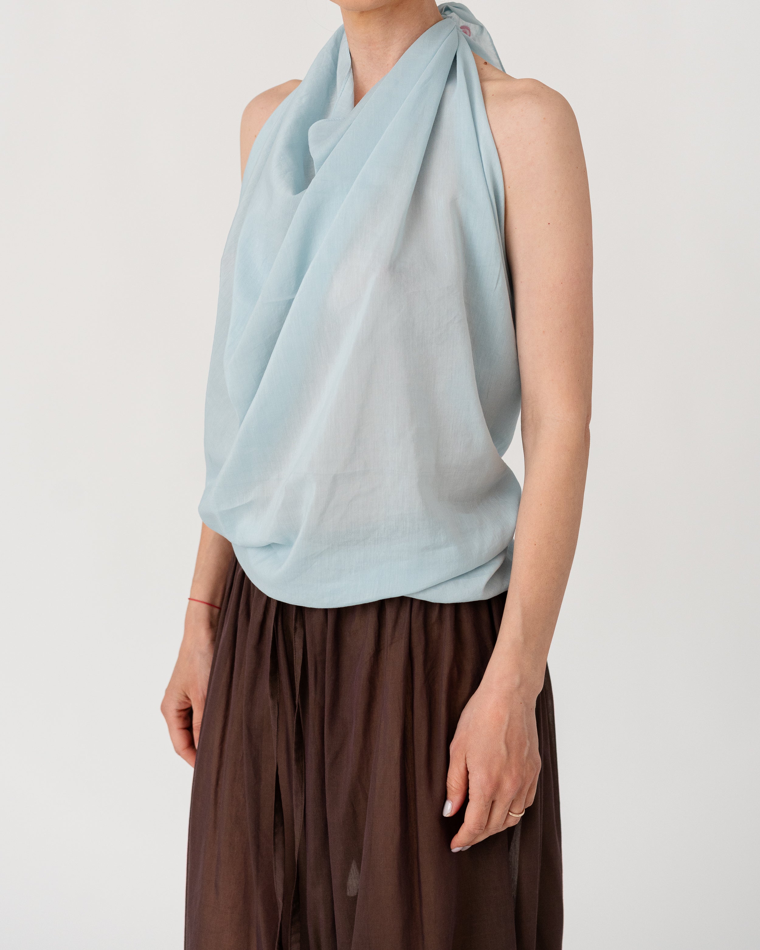• Scarf-inspired halter top crafted from airy, fluid fabric ( 30% silk, 70% cotton)